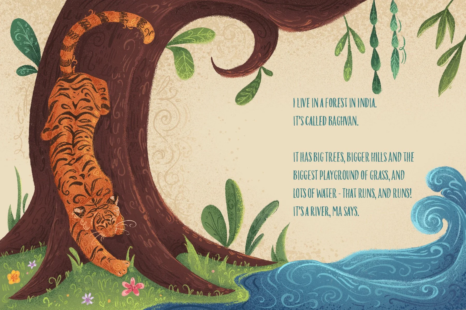 Book spread for Prerna Singh Bindra’s “When I Grow Up I Want to be a Tiger.”